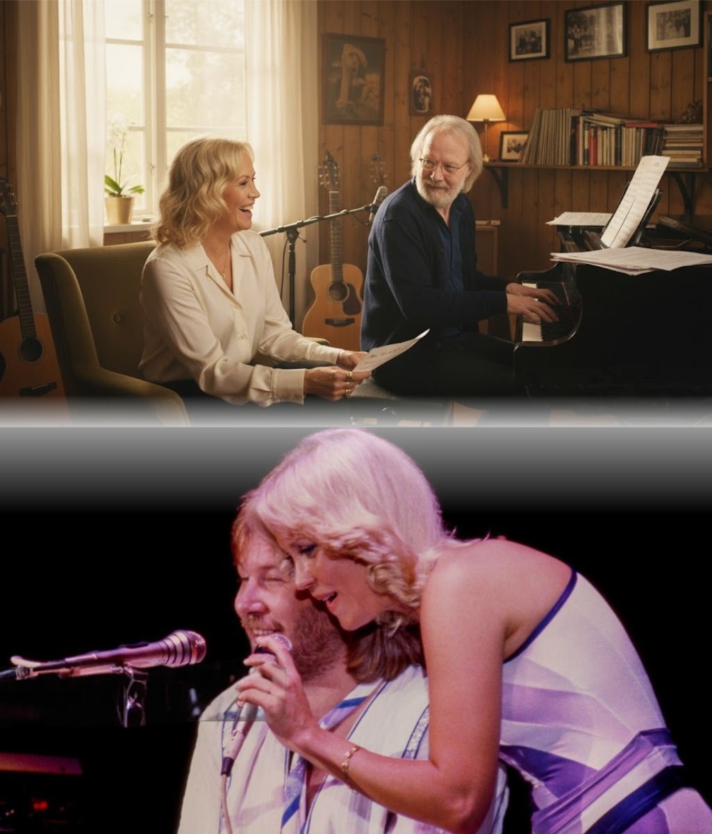 Inside a softly lit Stockholm studio, the sound of Benny’s piano drifts through the air — delicate, deliberate, familiar. Moments later, a voice joins him: fragile at first, but unmistakable. Agnetha Fältskog, whose tone once carried both the ache and beauty of millions of hearts, sings again. It isn’t just sound — it’s memory returning to life, the echo of something once thought finished now breathing again in full color.