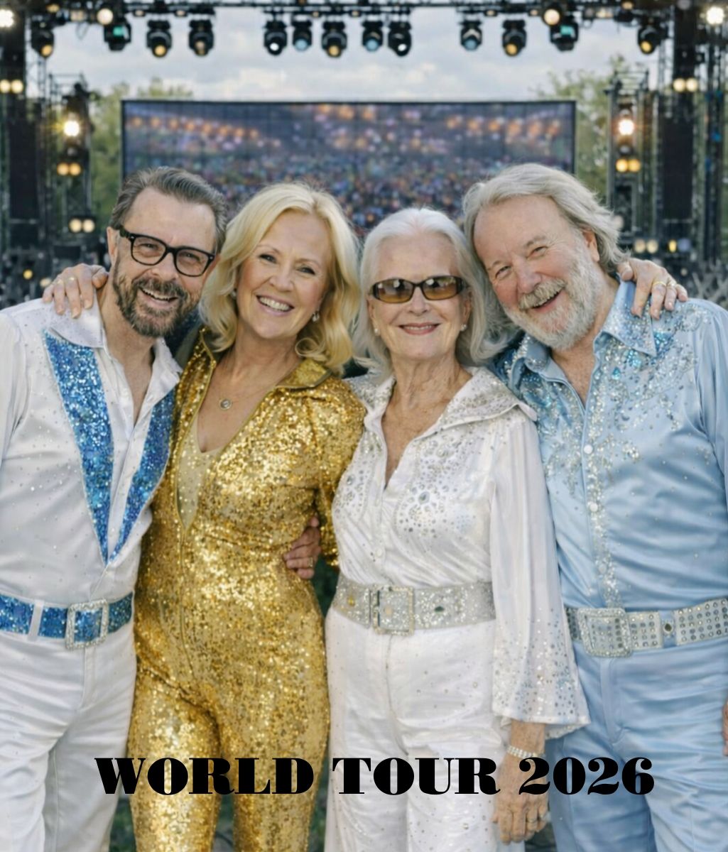 In a surprise press conference held in the heart of the city, Agnetha Fältskog, Björn Ulvaeus, Benny Andersson, and Anni-Frid Lyngstad stood side by side and confirmed what fans had barely dared to imagine: ABBA is officially returning with a WORLD TOUR in 2026.