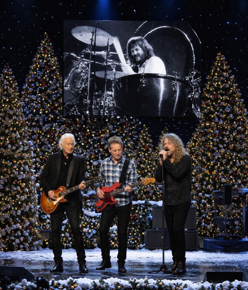 When the music began to unfold, it did not sound like performance. It sounded like conversation — three brothers speaking to the fourth in the only language they ever trusted completely. Each chord carried restraint. Each pause carried respect. And woven through it all was the unmistakable presence of JOHN BONHAM