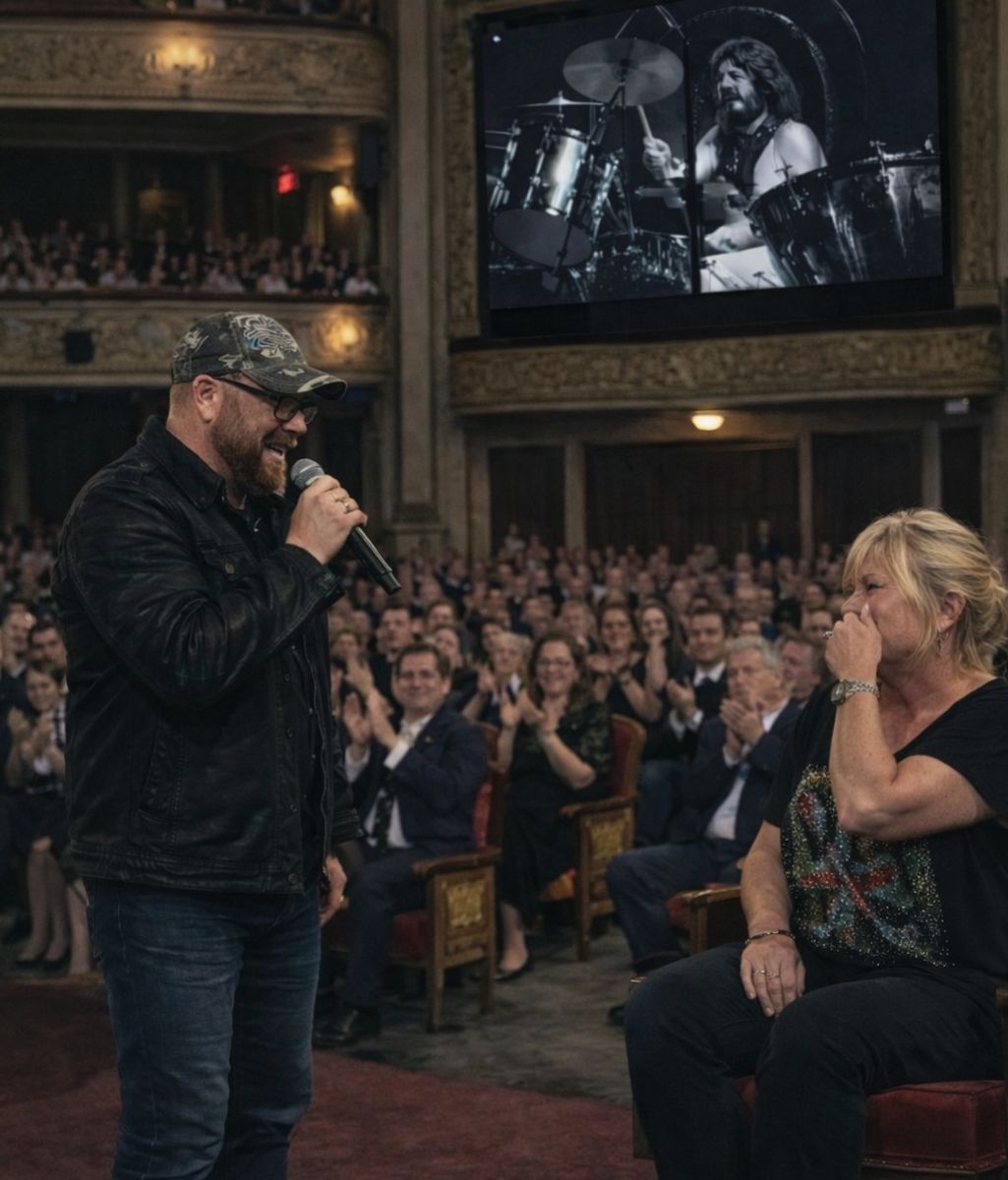 As Jason sang, the hall disappeared. His voice was not trained for grandeur—it was honest, fragile, and unmistakably human. Each line carried weight, as if memory itself were pressing against his chest. When the melody reached its center, Pat Bonham lowered her head. Tears fell freely. She was not watching a performance. She was hearing her husband again—through their child.