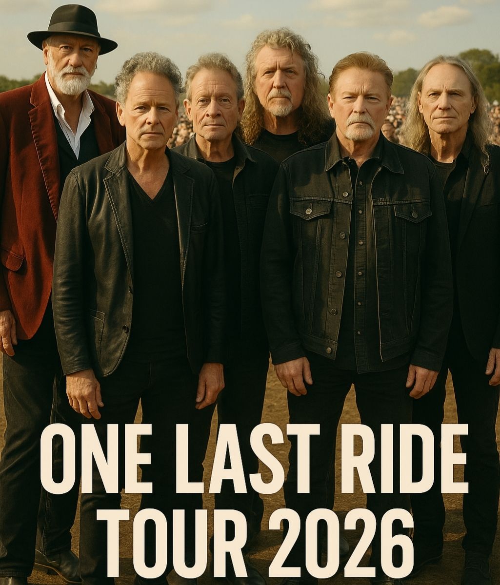 The world of rock roared with a revelation that felt like destiny. On a night already destined for history, Mick Fleetwood and Lindsey Buckingham of Fleetwood Mac, John Paul Jones and Robert Plant of Led Zeppelin, and Don Henley and Timothy B. Schmit of The Eagles stood side by side. Together, these seven fierce tigers of rock announced a journey written not only for today, but into eternity: the One Last Ride Tour 2026.