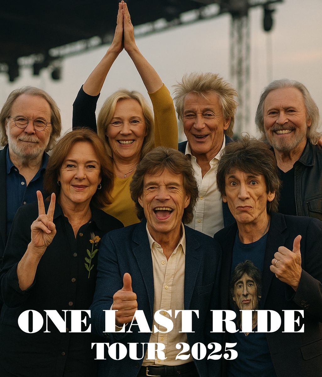 For the first time in history, members of ABBA — Benny Andersson, Anni-Frid Lyngstad, and Agnetha Fältskog — will join forces with Rod Stewart, Mick Jagger and Ronnie Wood of The Rolling Stones, and the timeless Barry Gibb of Bee Gees fame. Together, they have announced what may be the most heartfelt and symbolic journey of their lives: “ONE LAST RIDE 2026.”