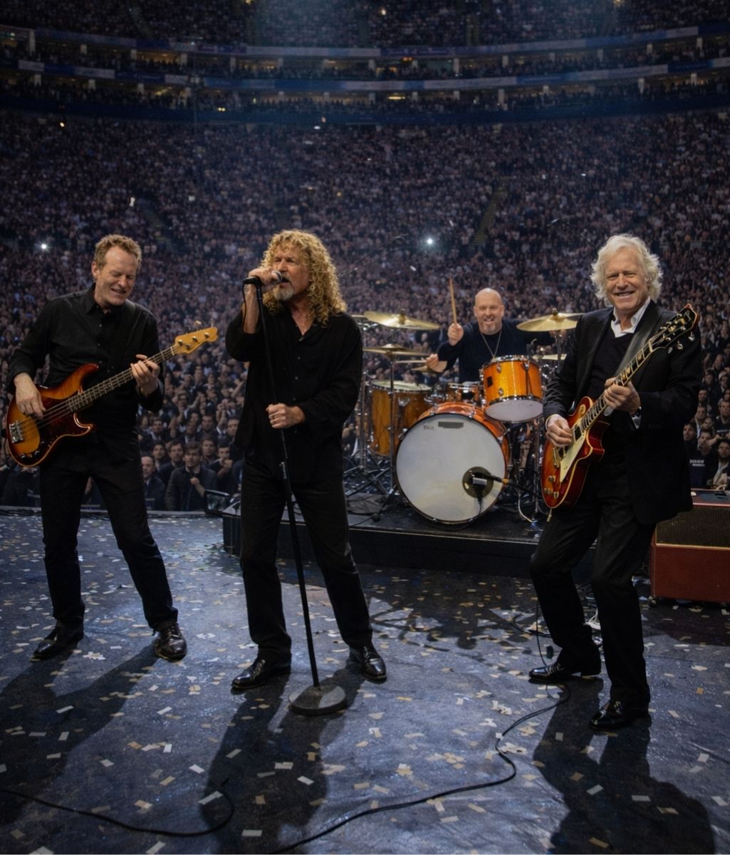 Midway through the song, Robert Plant slowed. His grip tightened around the microphone. His voice softened, then broke. Tears followed—not from strain, not from age, but from memory. The arena fell into a silence that only understanding can create. This was not a pause in performance; it was an admission. A recognition of absence. Of John Bonham, gone since 1980, and of years that can be honored but never reclaimed.