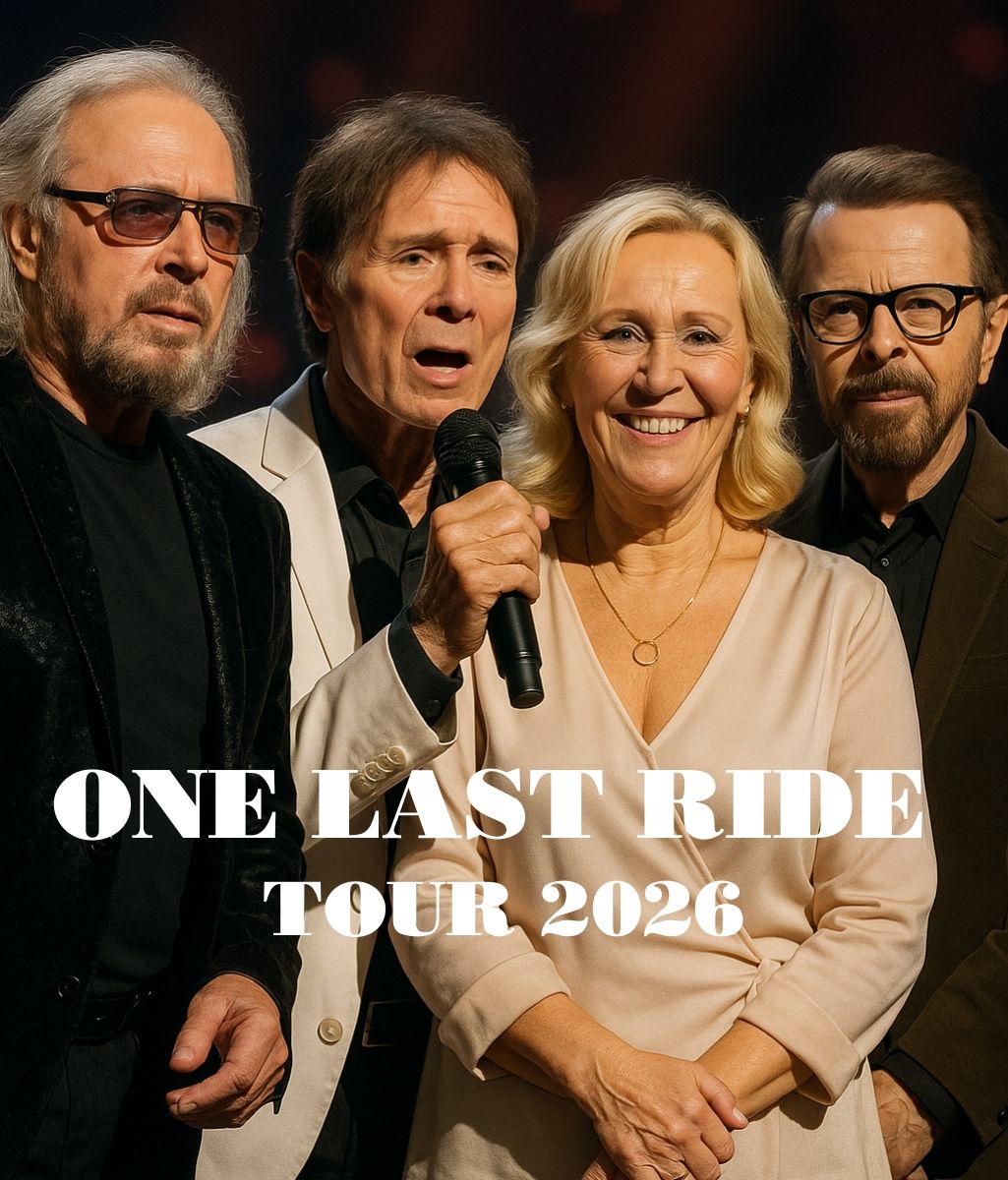 Early 2026 is preparing to deliver a moment the world never expected to see again — a night when Barry Gibb of the Bee Gees, Cliff Richard, and ABBA icons Agnetha Fältskog and Björn Ulvaeus will share the same stage. They come together for a single, extraordinary event known as One Last Ride Tour 2026, a gathering that feels less like a performance and more like a final embrace shared between artists and the generations who grew up with their music.