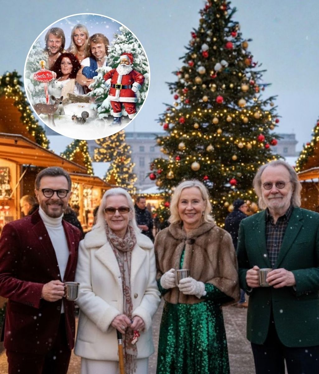 For the first time in years, all four members of ABBA — Agnetha Fältskog, Anni-Frid Lyngstad, Björn Ulvaeus, and Benny Andersson — quietly gathered at a festive holiday market. There was no public announcement, no flashing cameras, no security cordons. Just four old friends standing together, wrapped in scarves, holding warm mugs between their hands, and sharing a moment that felt more like a gift than an event.