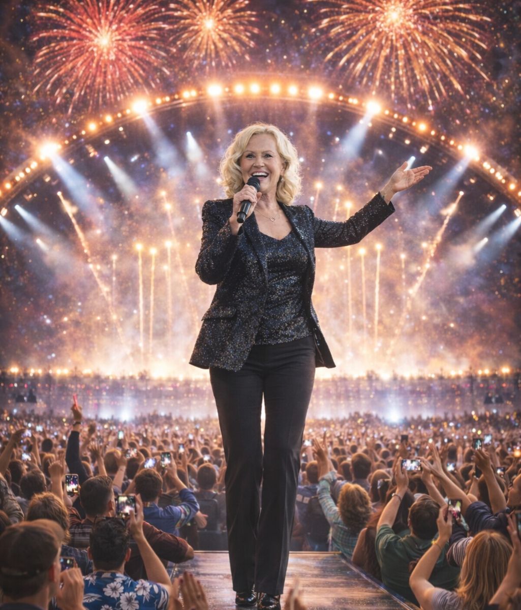 When the final notes faded, she did not raise her hands or step back dramatically. She looked out across the arena — not searching for reaction, but acknowledging presence. Then she spoke a short New Year wish. Not a slogan. Not a line designed for applause. Just a sentence, offered plainly, as if to one person rather than thousands: